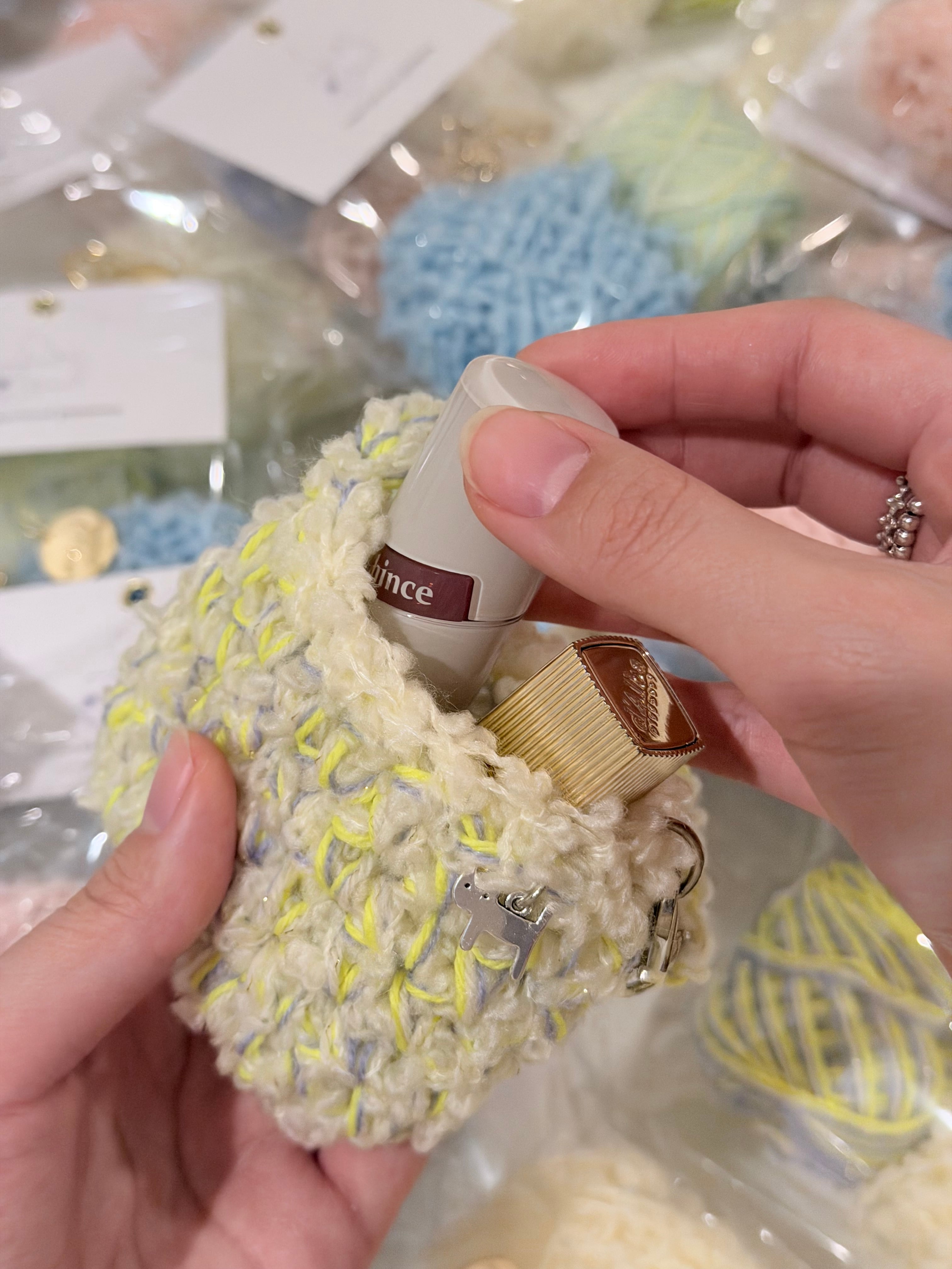 キラキラの引き揃え糸でlip’in pouch が編めるキットです⏜ ۫ . ⟡